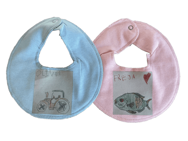 Hagesmæk – Lav en unik hagesmæk til lillebror eller lillesøster med en tegning fra storesøster eller storebror.