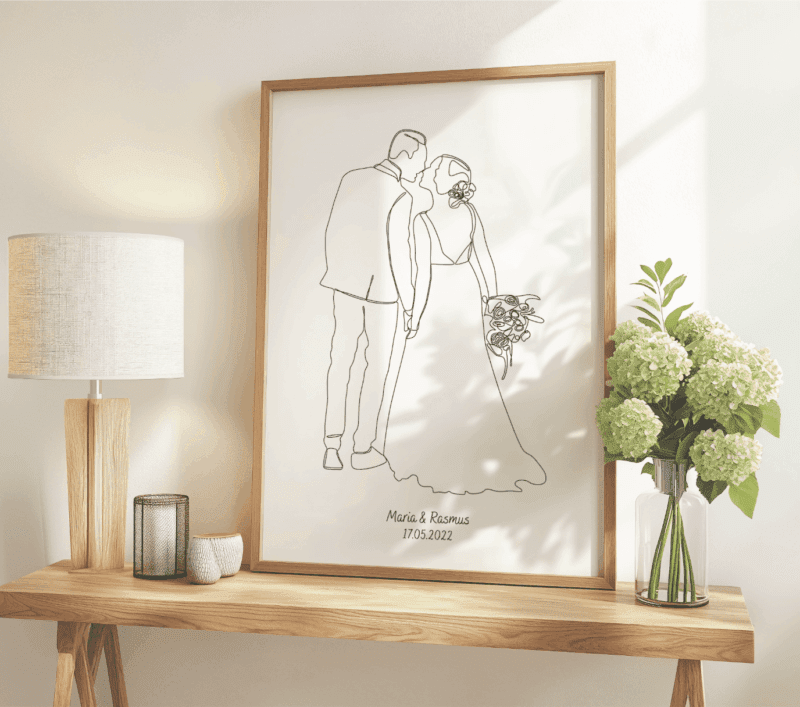 En bryllupsplakat er den perfekte personlige bryllupsgave, som både kan hænge smukt i hjemmet og minde parret om kærligheden hver dag. Den skiller sig ud fra traditionelle gaver og viser omtanke, kreativitet og hjertet bag gaven.