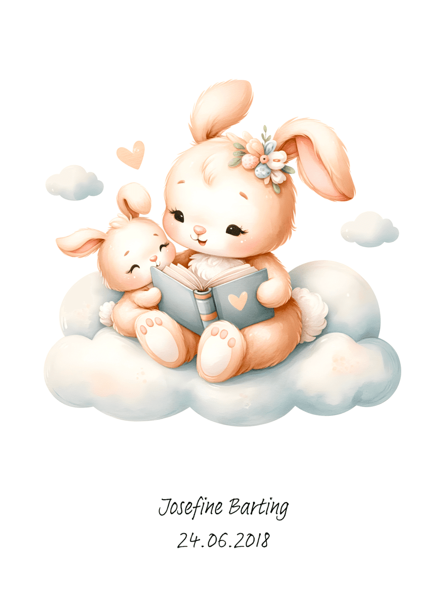 Vores mor og barn børneplakat er en hjertevarm og personlig illustration, der hylder det særlige bånd mellem mor og barn. Med bløde farver, rolige udtryk og et eventyrligt univers passer plakaten perfekt ind i børneværelset – som en tryg og kærlig del af hverdagen.