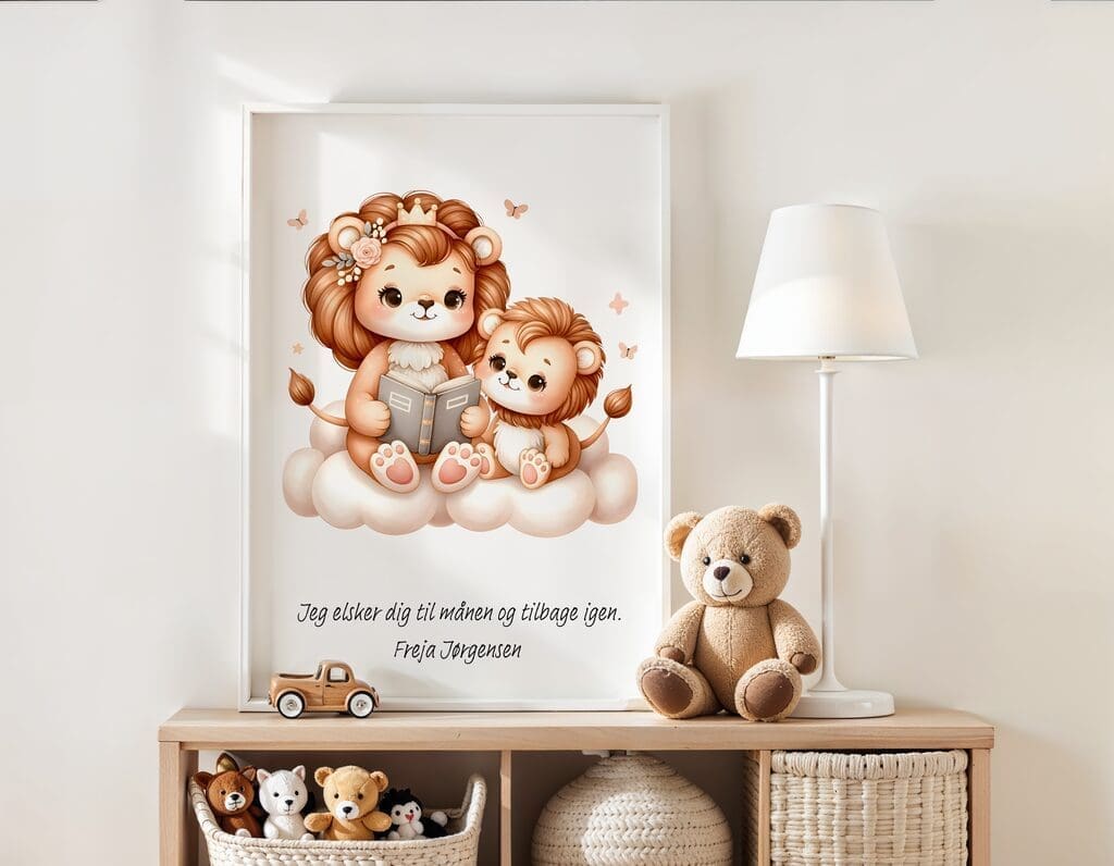 Mor og barn løve – børneplakat