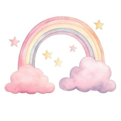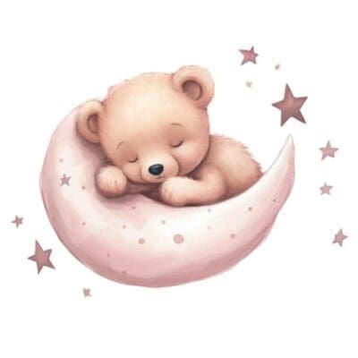 Plakat m/Regnbue, bogstav, sovende teddy