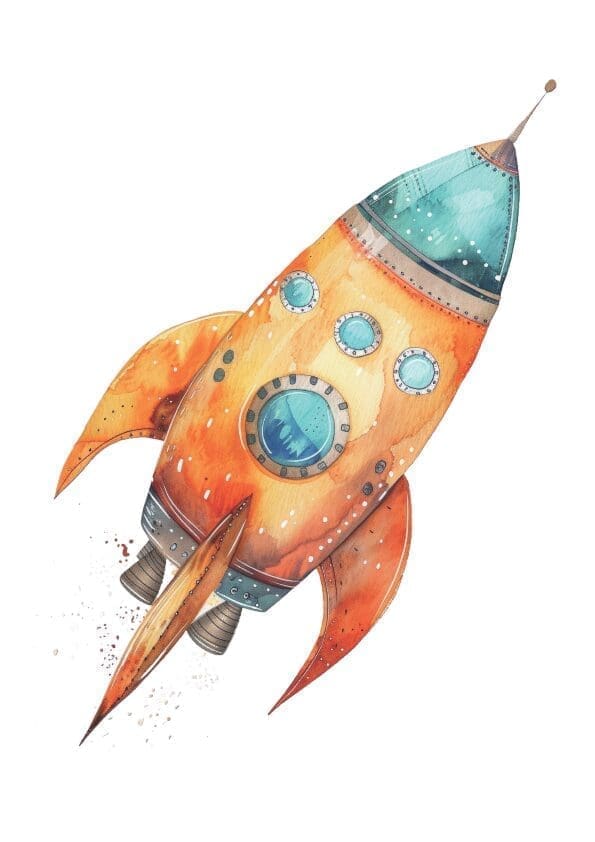 Plakat m/Rumraket, bogstav, cykel