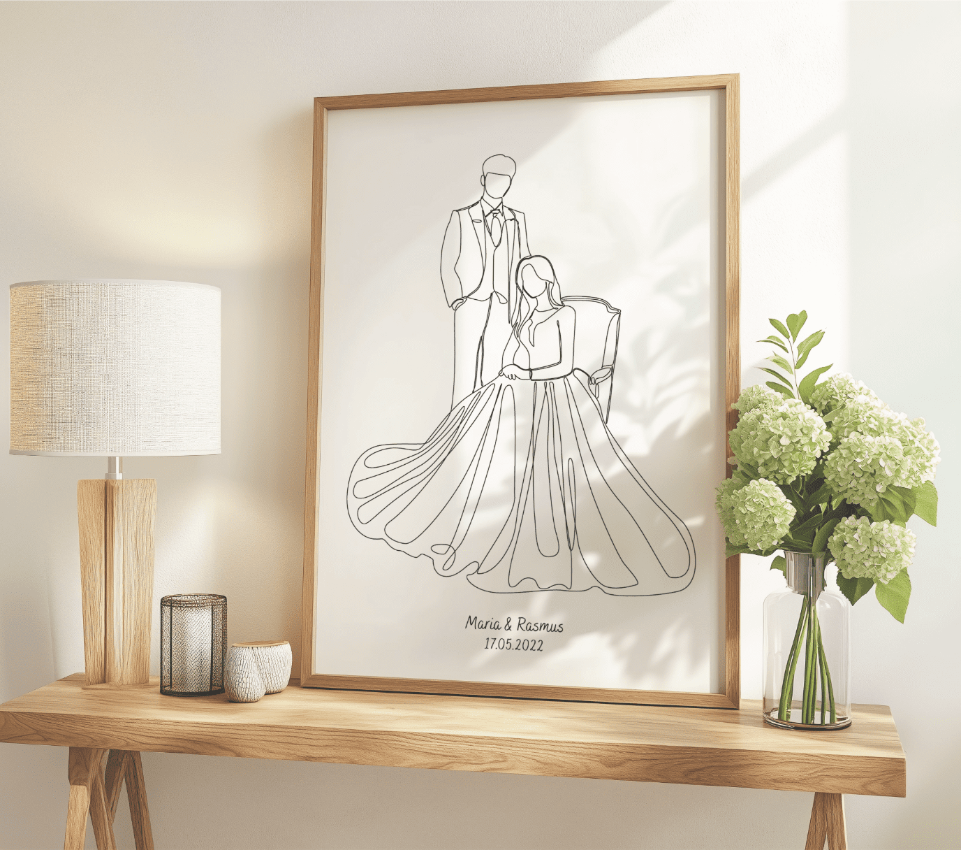 En bryllupsplakat er den perfekte personlige bryllupsgave, som både kan hænge smukt i hjemmet og minde parret om kærligheden hver dag. Den skiller sig ud fra traditionelle gaver og viser omtanke, kreativitet og hjertet bag gaven.