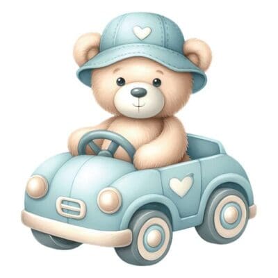 Plakat m/Teddy bil, bogstav, Teddy luftballon