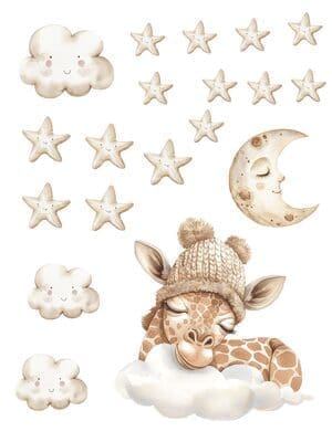 Skab en magisk og tryg stemning på børneværelset med denne søde wallsticker af en sovende bamse på en blød sky omgivet af små funklende stjerner. Perfekt til at skabe en rolig og hyggelig atmosfære ved sengen eller puslepladsen.